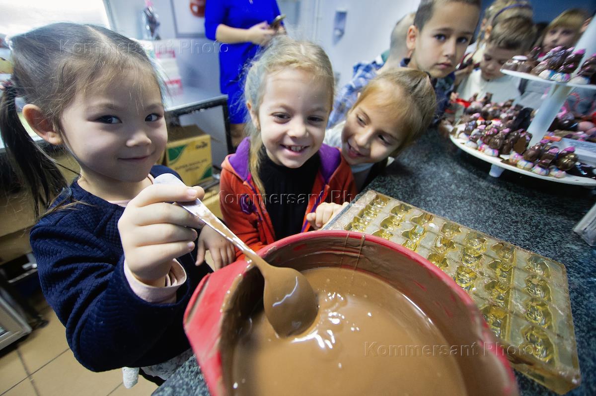 Фотопроект на тему: "Промышленный туризм". Экскурсия на шоколадную фабрику. Дети на конвейере белого…