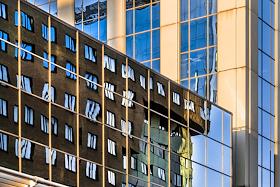 Виды Москвы. Жанровая фотография. Элитный жилой комплекс. Отражение зданий в окнах.