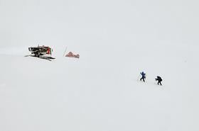 Жанровая фотография. Отдых на склонах Эльбруса и Чегета. Сотрудники курорта Эльбрус чистит крышу…