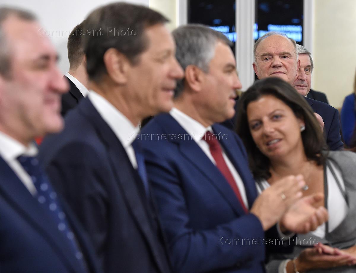Председатель Государственной думы России Вячеслав Володин вручает ежегодные премии представителям СМИ в Госдуме.