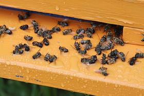 Жанровая фотография. Пасека. Ульи с пчелами. Мертвые пчелы в улье.