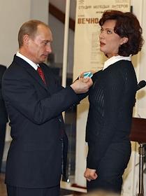 Президент России Владимир Путин (слева) и актриса Елена Яковлева (справа) во время празднования…