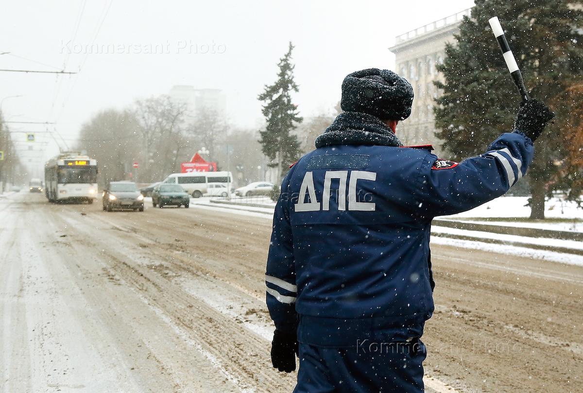 Жанровая фотография. Сотрудник ДПС во время патрулирования на центральной улице города.