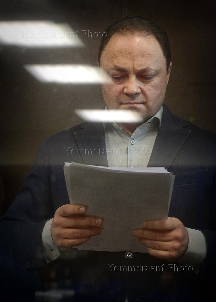 Бывший мэр Владивостока Игорь Пушкарев, обвиняемый в коррупции, во время заседания Тверского…