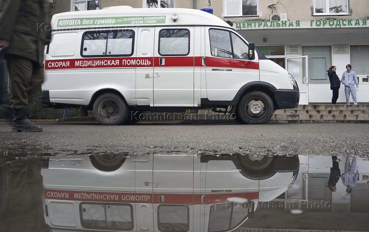 Жанровая фотография. Профилактика гриппа. Машины скорой помощи у здания Центральной городской…