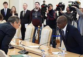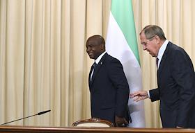 Политика Встреча министра иностранных дел Российской Федерации Сергей Лаврова с министром иностранных дел и международного сотрудничества Cьерра-Леоне Али Каббы в Доме приемов МИД России.