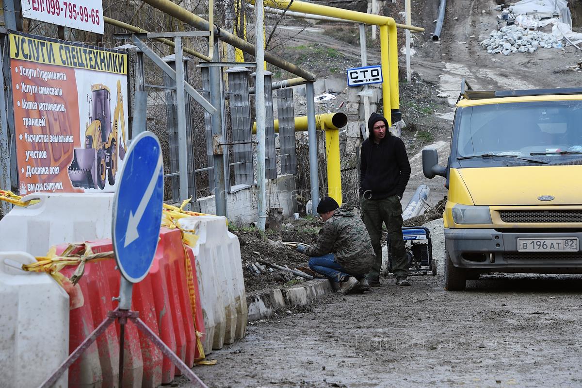 Жанровая фотография. Сотрудники коммунальных служб города во время ремонта магистрального водовода.