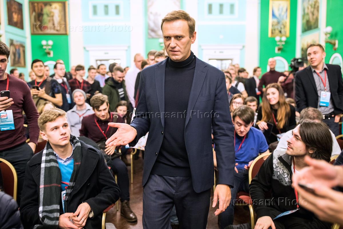 Глава Фонда борьбы с коррупцией (ФБК) Алексей Навальный во время встречи со своими сторонниками в…