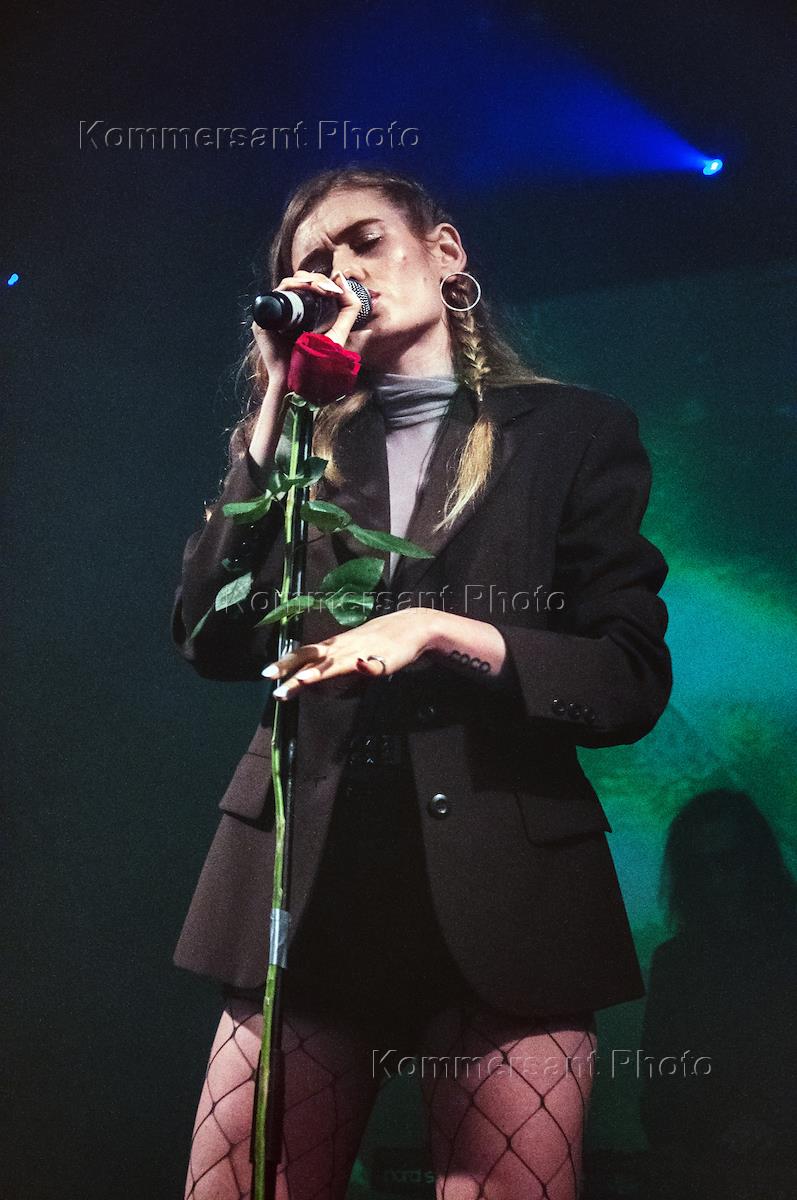 Певица Луна (Кристина Герасимова) во время выступления на своем концерте в клубе "Космонавт".