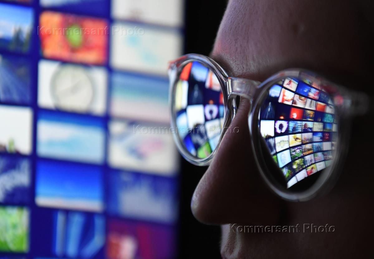 Жанровая фотография. Цифровое эфирное телевидение. Люди смотрят телевизор.