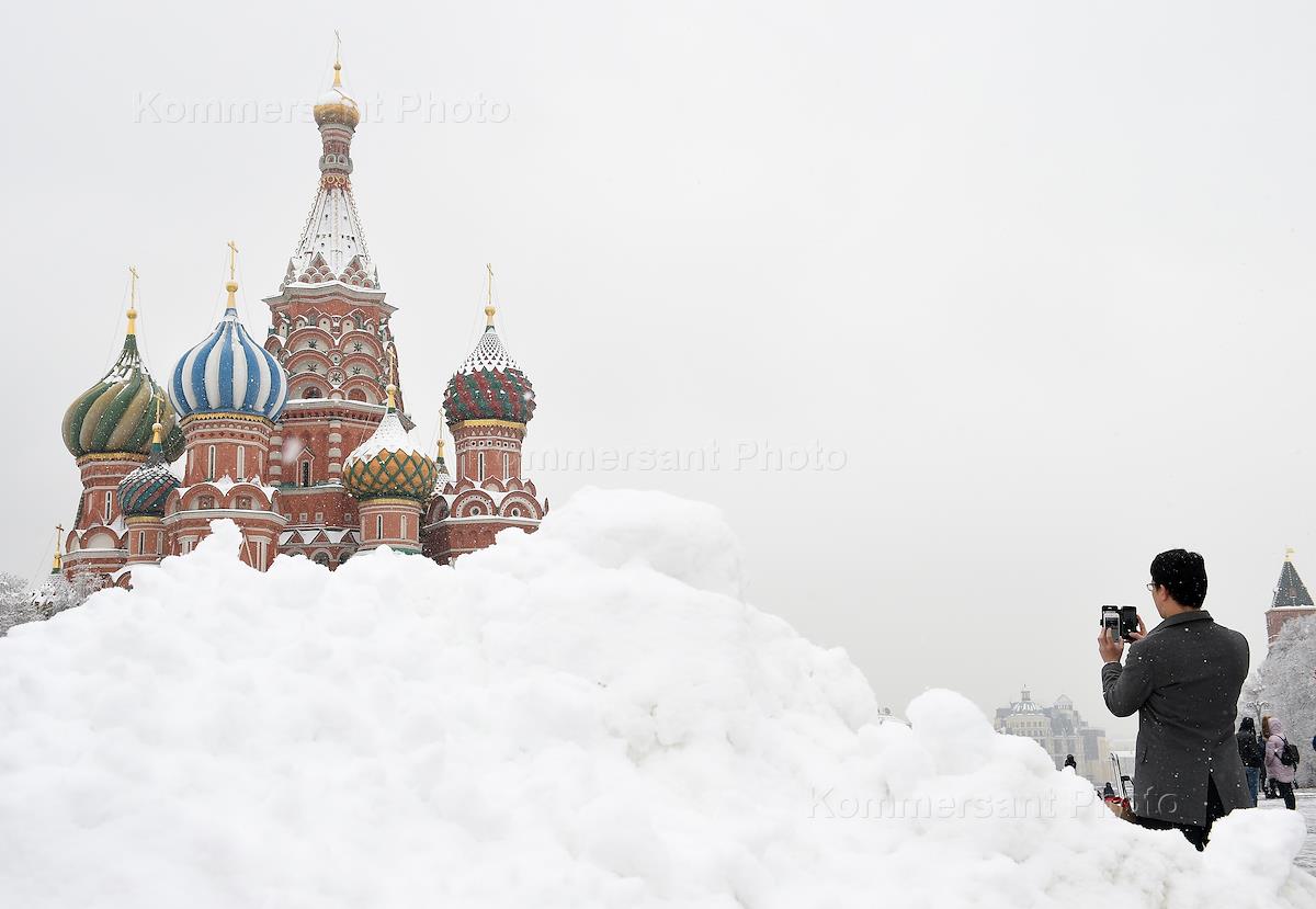Снегопад в Москве. Сугробы на Красной площади.