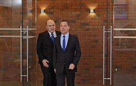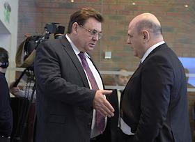 Руководитель Федеральной налоговой службы России Михаил Мишустин (слева), генеральный директор ПАО…