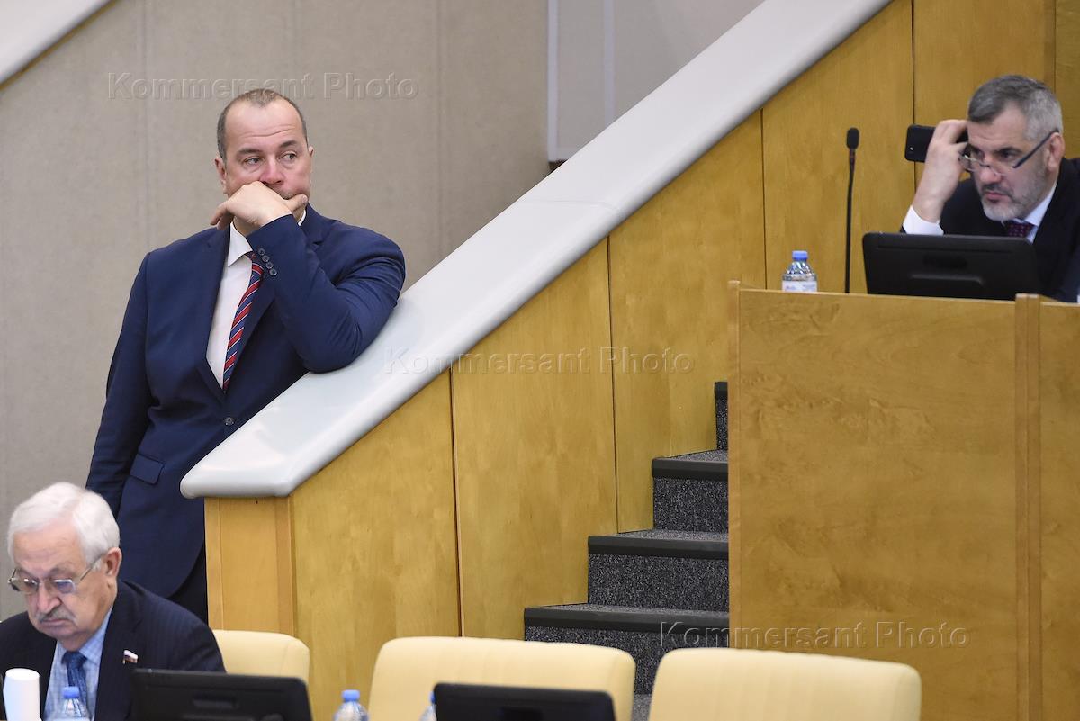 Пленарное заседание Государственной думы (ГД) России. Слева направо: председатель комитета ГД России…