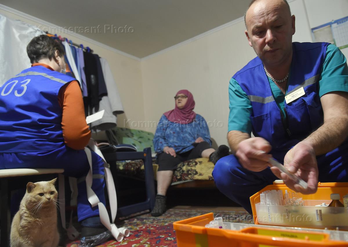 Сотрудник "Скорой помощии" на вызове у жителя села Лямбирь.