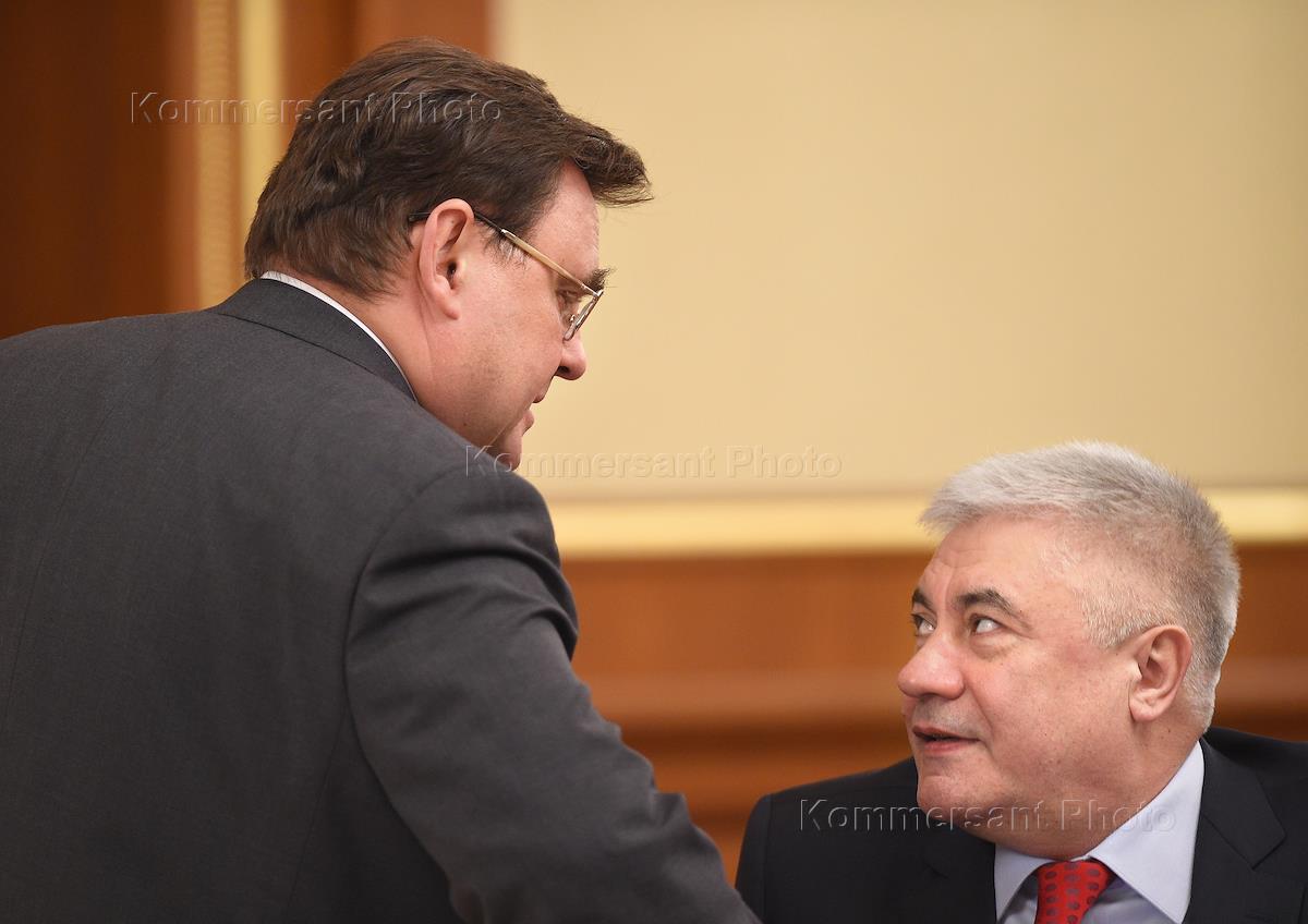 Заседание правительства России. Министр культуры России Владимир Мединский (слева) и министр обороны…