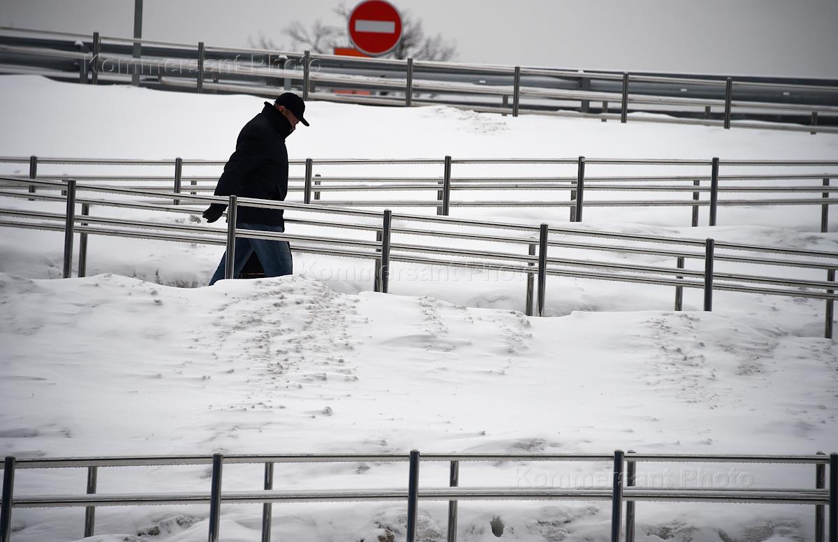 Жанровая фотография. Аэропорт Домодедово. Уборка снега перед зданием аэропорта.