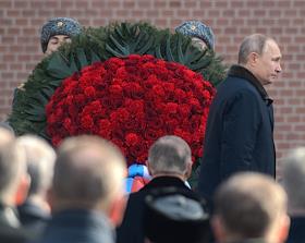 Президент России Владимир Путин возложил венок к Могиле Неизвестного Солдата у Кремлевской стены, в честь дня Защитника отечества.
