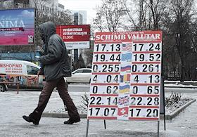 Парламентские выборы в Молдавии. Жанровая фотография. Информационное табло с курсами валют.