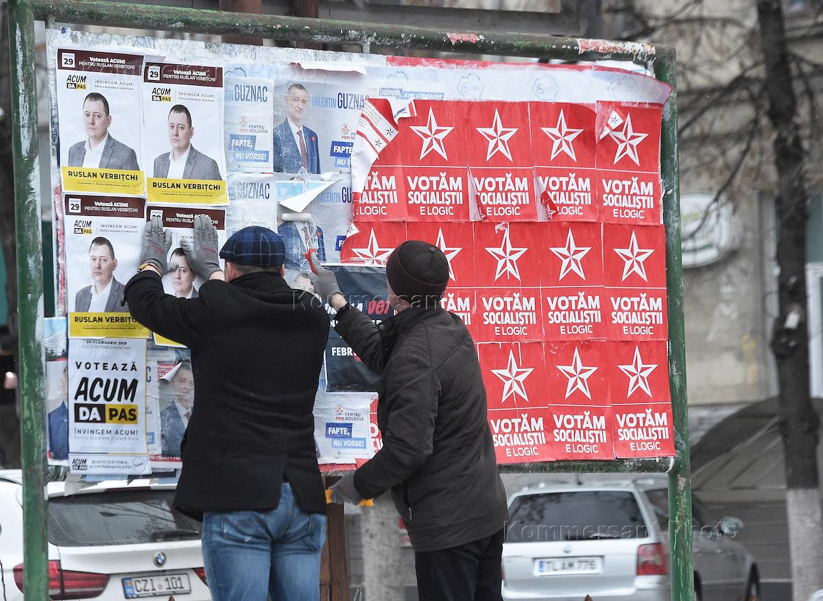 Парламентские выборы в Молдавии. Предвыборные агитационные плакаты на улице города.