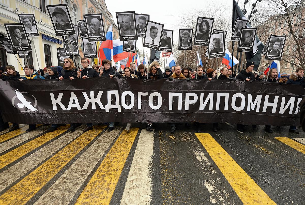 Участники марша памяти политика Бориса Немцова на проспекте академика Сахарова.