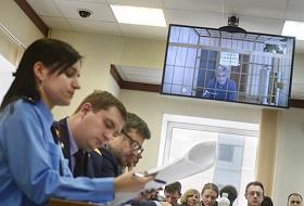 Основатель инвестиционной компании Baring Vostok Майкл Калви (на экране телевизора), обвиняемый по…