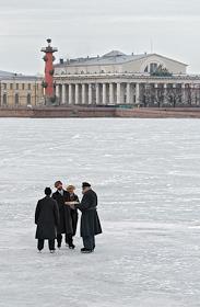 Съемки фильма "Серебряные коньки" студии "Тритэ" Никиты Михалкова прошли на льду реки Невы.