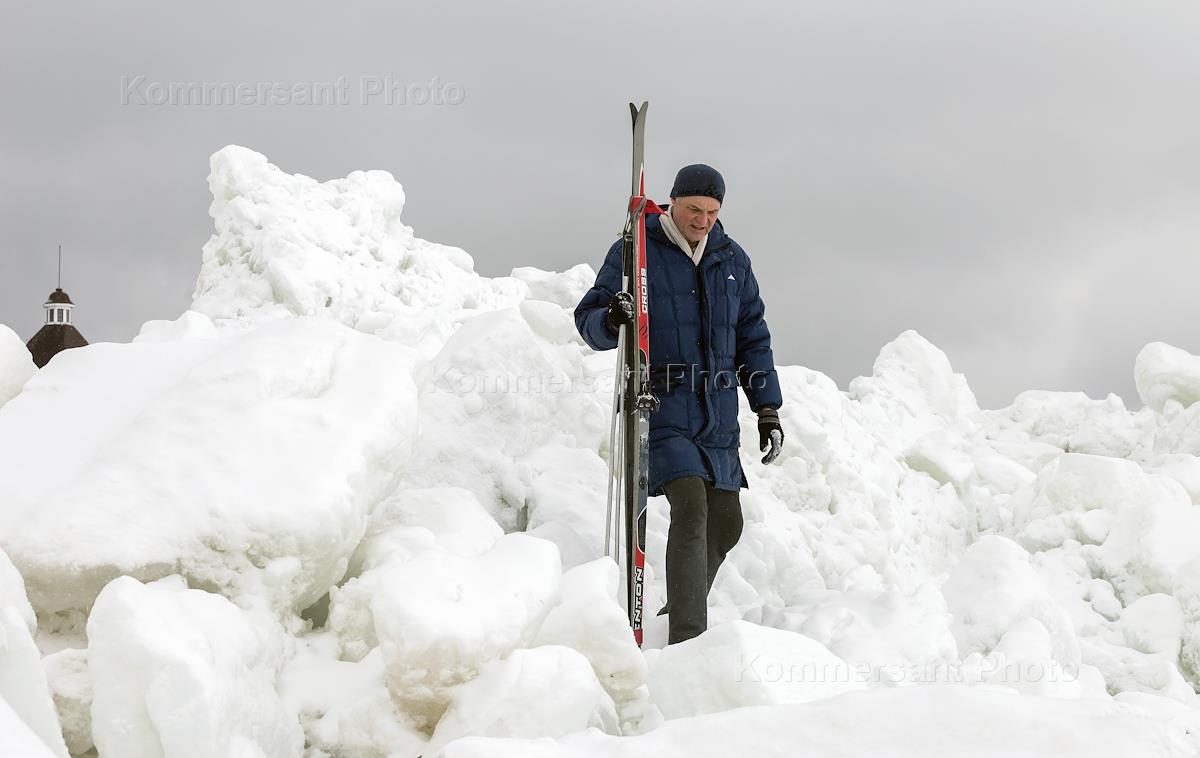 Ледяные торосы на берегу Финского залива у города Зеленогорска, образовавшиеся после шторма.