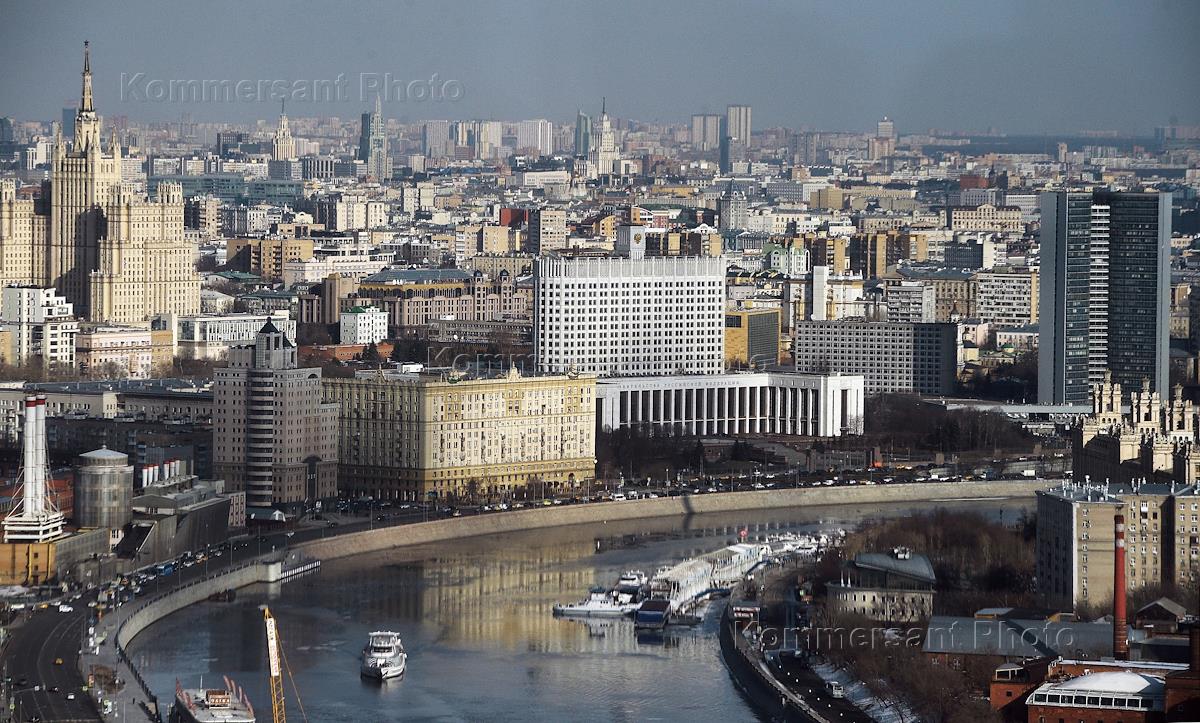 Виды Москвы. Здание правительства России (Белый дом). Краснопресненская набережная. Москва-река.