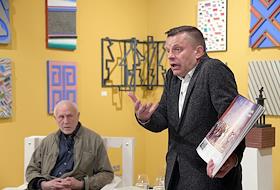 Вечер журналиста Леонид Парфенов и художника Игоря Шелковского "Двое за столом" в галерее "Палисандр".