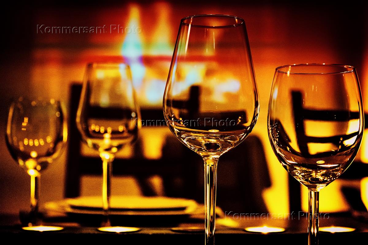 Жанровая фотография. Сервировка стола. Бокалы на столе.