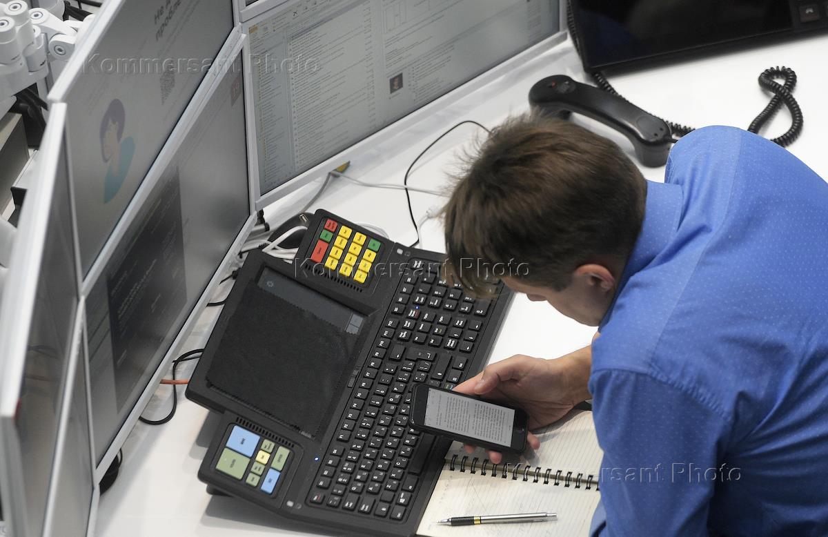 Сотрудники ПАО "Сбербанк России" во время работы в главном офисе.