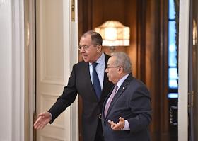 Переговоры Министра иностранных дел России Сергея Лаврова с главой МИД Алжира Рамтаном Ламамрой в Доме приемов МИД.