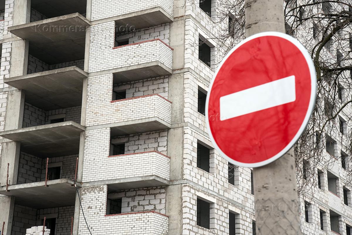 Жанровая фотография. Строительство жилого дома. Знак "Въезд запрещен" (кирпич).