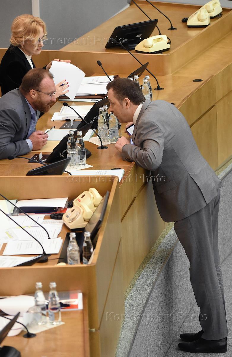 Пленарное заседание Государственной думы (ГД) России. Слева направо: председатель комитета ГД России…