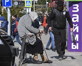 Жанровые фото.Пожилая женщина просит милостыню у офиса "Микрозайма".