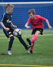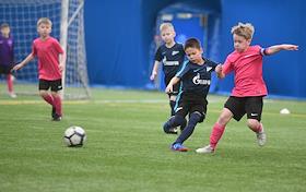 Тренировка воспитанников Академии футбольного клуба "Зенит".