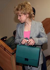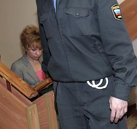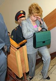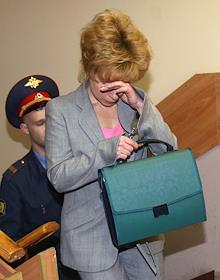 Бывший председатель правления банка "Олимпийский" Светлана Герасимова перед началом заседания Кунцевского суда, на котором должен быть вынесенен приговор. В отношении Светланы Герасимовой было возбуждено уголовное дело по статье 159, пункт 4 УК РФ (Мошенничество, совершенное организованной группой либо в особо крупном размере).