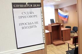 Объявление "Суд на приговоре. Просьба не входить" у открытой двери пустого зала заседания…