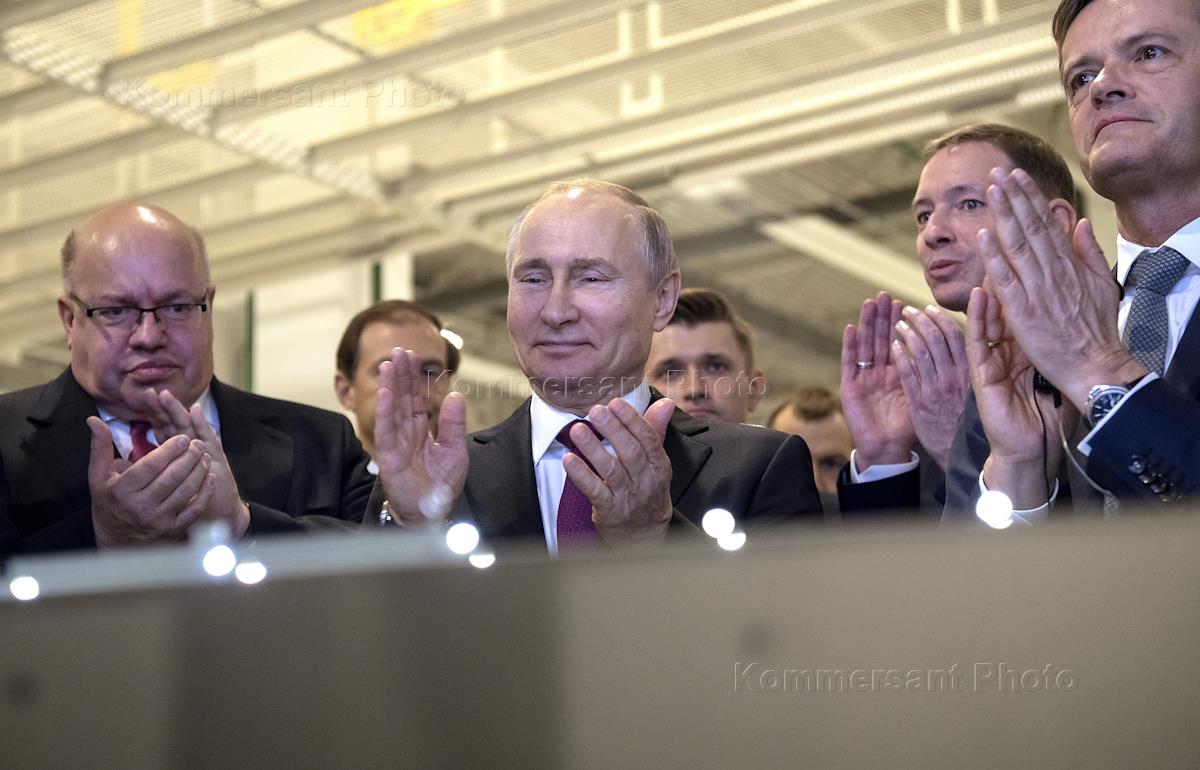 Политика Церемония открытия завода по производству легковых автомобилей Mercedes-Benz. Участвуют президент РФ Владимир Путин, министр экономики ФРГ Петер Альтмайер, губернатор Подмосковья Алексей Воробьев.