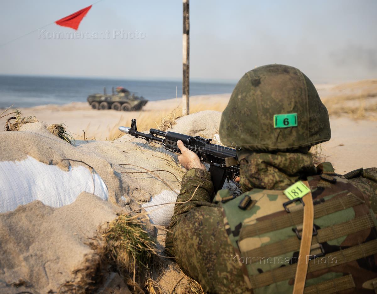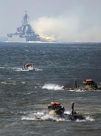 Военные учения по высадке морского десанта на побережье на полигоне Хмелевка.