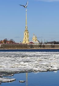 Виды Санкт-Петербурга. Петропавловская крепость. Отражение Петропавловского собора в Неве.