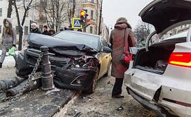 Виды Санкт-Петербург. Дорожно-транспортное происшествие (ДТП). Автомобиль на тротуаре.