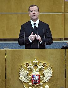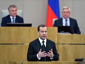 Председатель правительства России Дмитрий Медведев выступил на пленарном заседании Госдумы России.