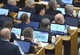 Пленарное заседания Государственной думы (ГД) России. Депутаты ГД России в зале заседания.