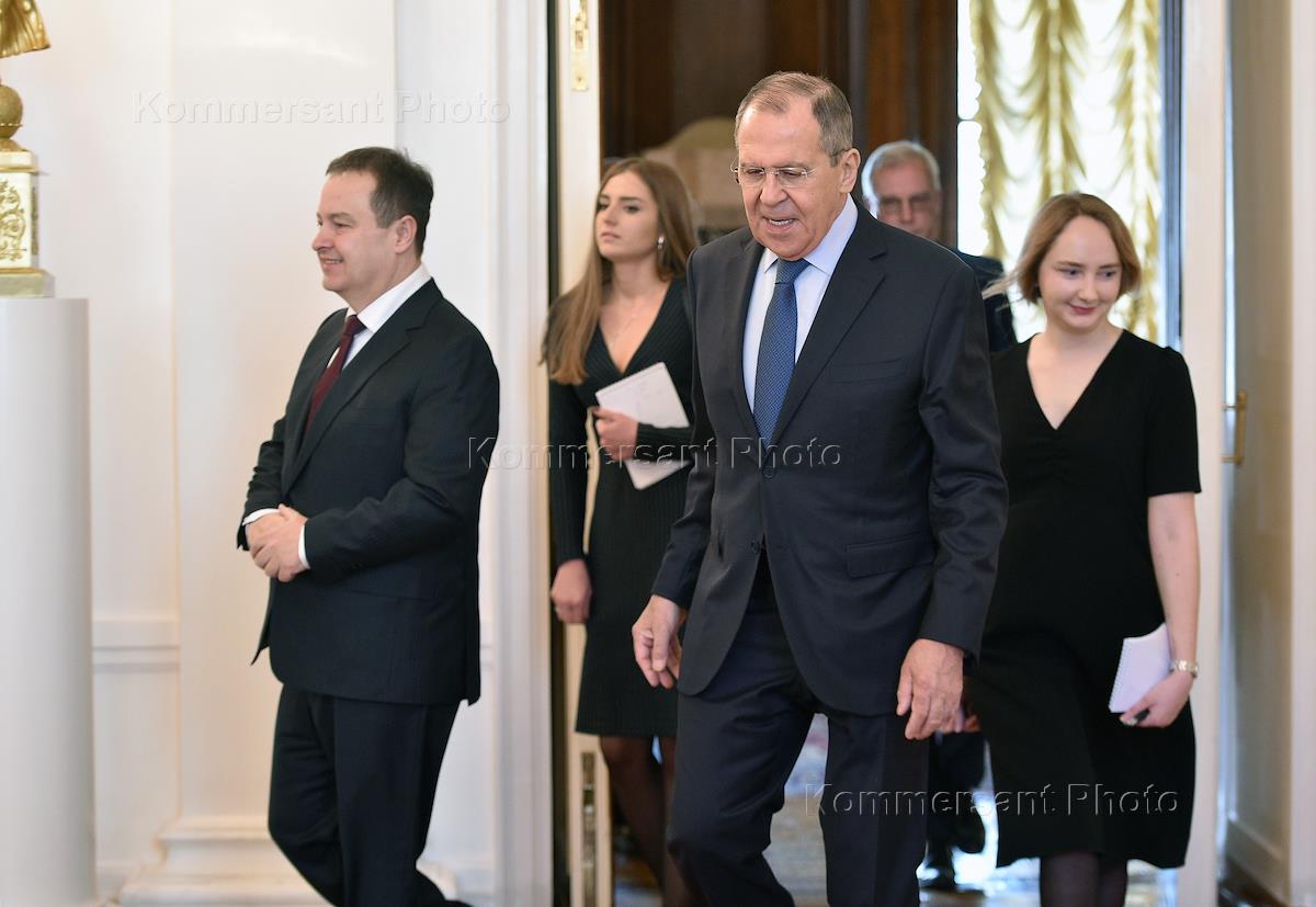 Политика Встреча Министра иностранных дел Российской Федерации Сергея Лаврова с Министром иностранных дел Сербии Ивица Дачичем в Доме приемов МИД России .