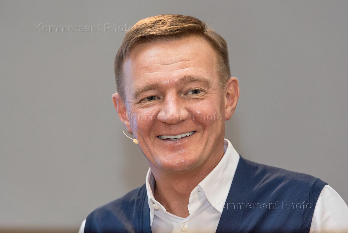 Временно исполняющий обязанности губернатора Курской области Роман Старовойт во время встречи с представителями СМИ.