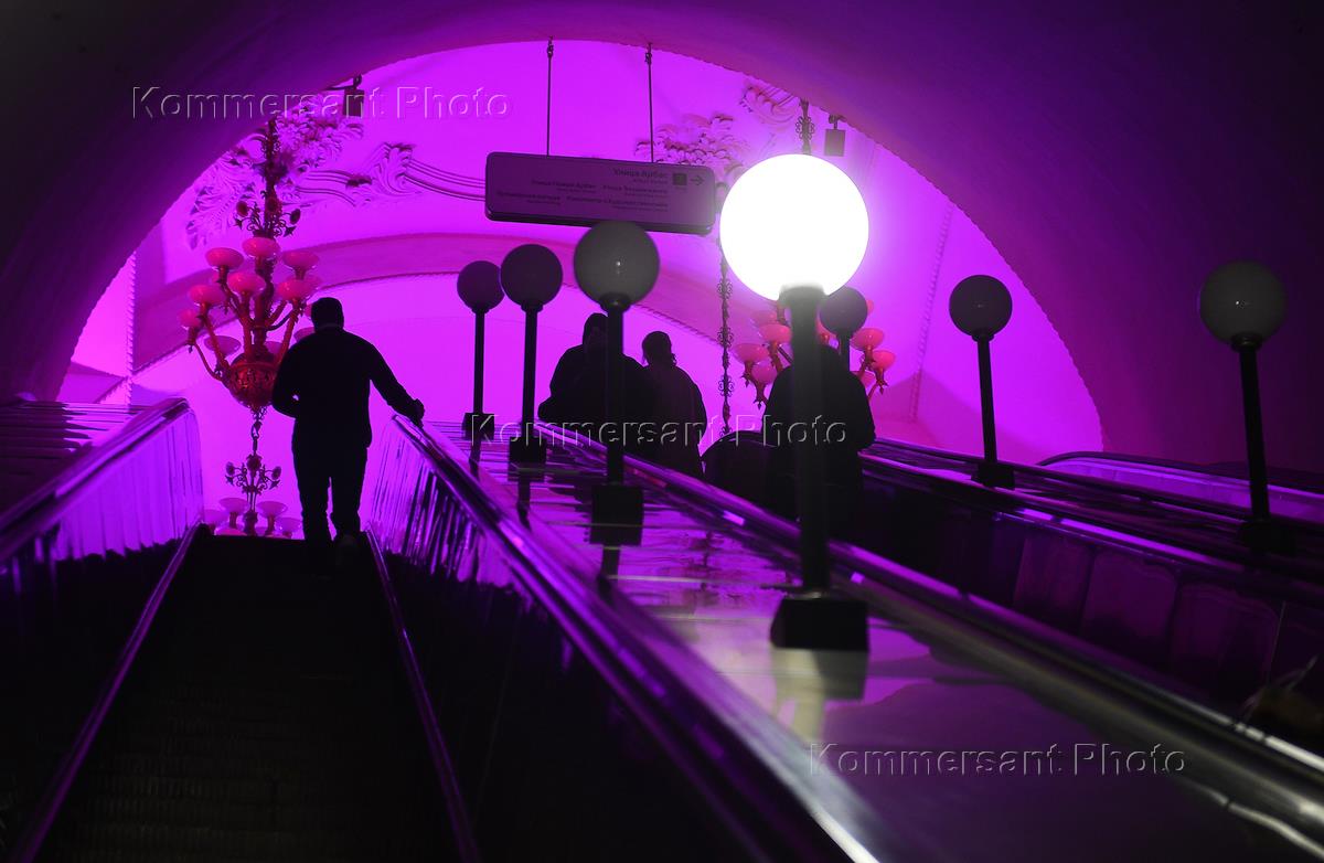 Ночной концерт проекта "Привет, Москва!" на станции метро "Арбатская". Жанровая фотография.…