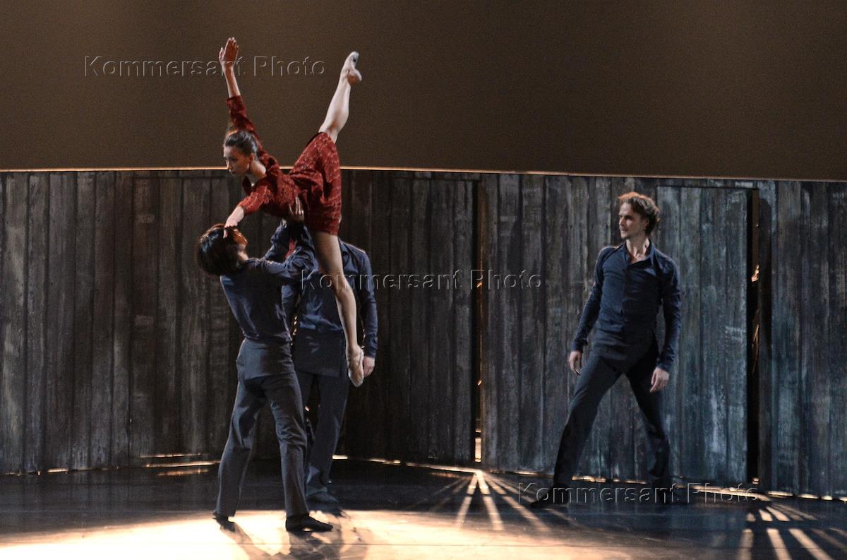 Генеральная репетиция одноактных балетов "Прогулка сумасшедшего" Йохана Ингера, "O zlozony / O composite" Триши Браун и "Cвадебка" Анжелена Прельжокажа на сцене музыкального театра имени К.С. Станиславского и Вл.И. Немировича-Данченко.
