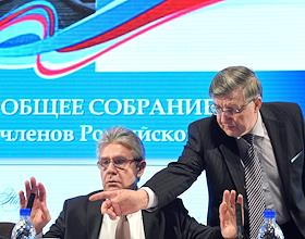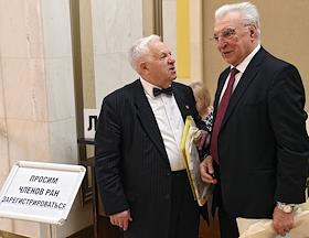 Общее собрание членов Российской академии наук (РАН) прошло в Большом зале РАН. Слева направо:…