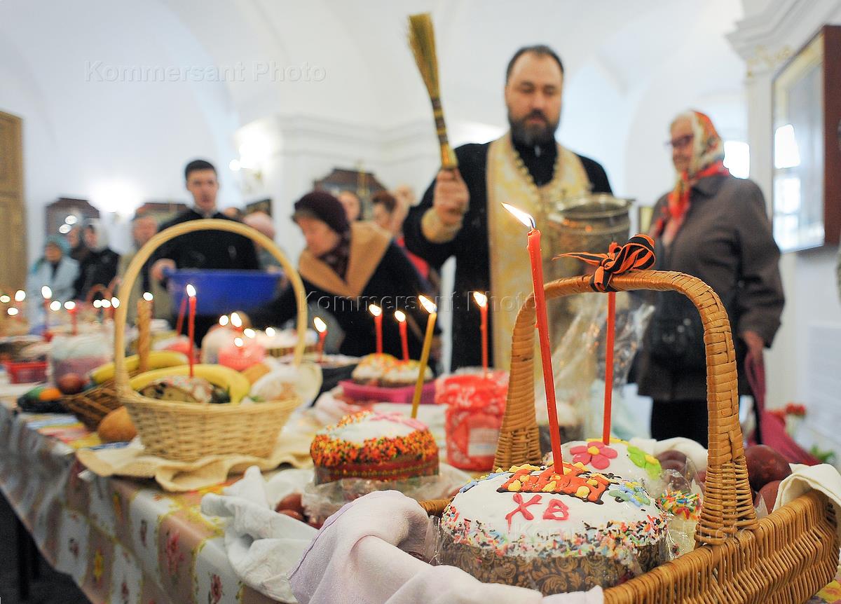 Чин освящения пасхальных куличей, яиц и пасхи в канун Светлого Христова Воскресения в Соборе Владимирской Божией Матери.